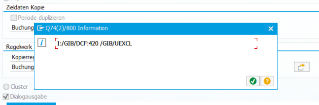 Auf der Q74 kommt eine wahrscheinlich nicht erwartete Meldung soblad man Dialogausgabe auswählt. Getestet beim Excel Upload. Screenshot angehangen. Variante TDR_UPLOAD_DIA. Folgende Nachricht wird ausgegeben: "I:/GIB/DCF:420 /GIB/UEXCL" Erwartet wurde der selbe Text wie auf der FQ0: "Listausgabe wird ggf. von Kopierregel /GIB/UEXCL nicht unterstützt."