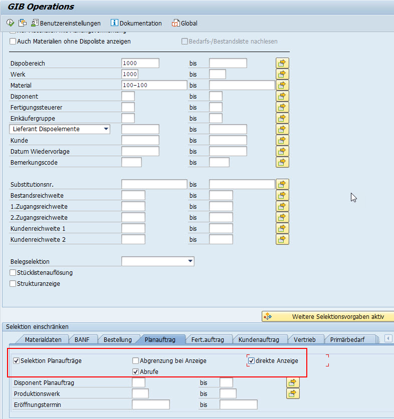Wenn die Abrufe für Planaufträge mit der Kombination direkte Anzeige aufgerufen werden soll, kann es vorkommen, dass die Meldung erscheint "Keine Daten zur Anzeige gefunden"