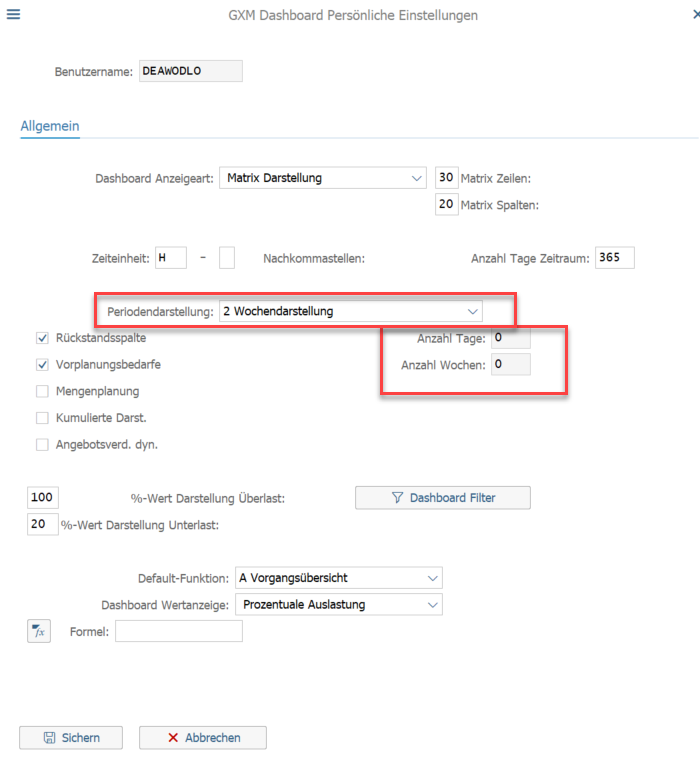 Created attachment 4379 [details] Periodendarstellung In den Absprüngen, die der Transaktion /GIB/DCP_DASH zugeordnet sind, konnten wir einen Fehler verzeichnen bzgl. der Benutzereinstellungen. Beispiel Absprung: "Analyse kapazitätsasulastung Sim". Benutzereinstellungen -> Reiter Allgemein Siehe Felder [Anzahl Tage, Anzahl Wochen] Hier werden zusätzliche angezeigt, die nur bei einer Periodendarstellung auf "Mix-Tages, Wochen, Monatsdarstellung " angezeigt werden sollten. (Siehe Anhang)