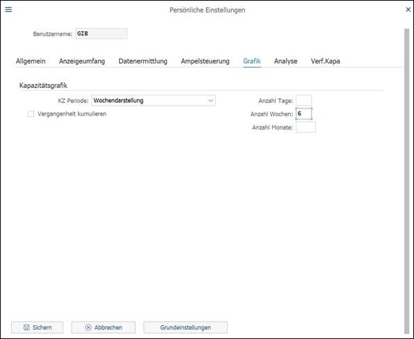Ergänzend dazu, ließ sich festellen, dass auch die Absprünge die der Transaktion /GIB/DCP zugeordnet sind, davon betroffen sind. Siehe Anhang 2. Benutzereinstellungen im DCP sind geändert worden und stimmen nicht mehr mit der Vorgabe überein Absprung Produktionsfeinplanung, Reiter Grafik: anstatt Wochendarstellung Periodenmix. Änderung im RAC erfolgt und Prüfung im RAC Absprung liefert, dass die Felder „Anzahl Tage und Monate“ noch vorhanden sind, obwohl diese eigentlich dynamisch verschwinden müssten. Hier ist der Reiter Grafik und Verf. Kapa betroffen.