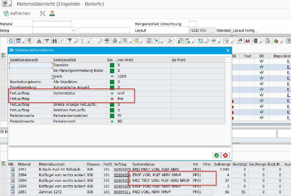 Created attachment 4760 [details] Screenshot Materialübersicht Test 1 Selektion FAUF und TRÜc -> Alles wird angezeigt