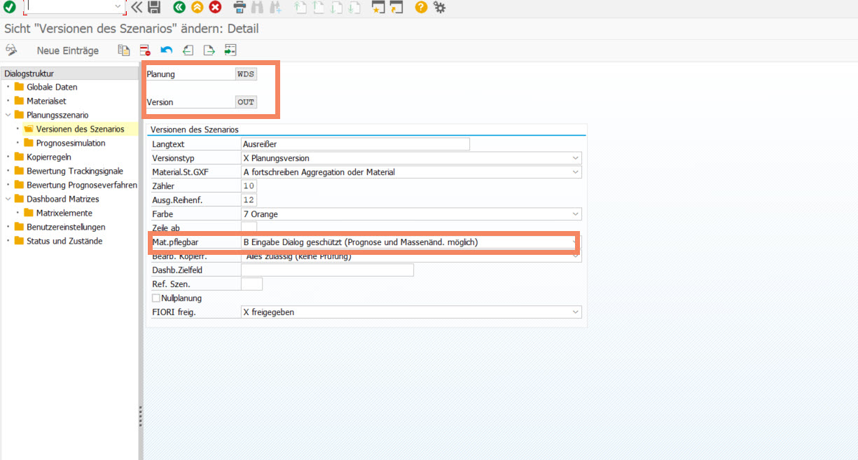 sobald die Nachfolgesteuerung aktiv ist und auch eine Eingabe im Sheet verhindern soll, werden Editierbare Zeilen bei Materialien mit Vorgängern oder Nachfolgern generell auf Versionstyp H umgestellt und sind nicht mehr eingabebereit. Das gleiche gilt für Aggregationen, diese dürfen im Web nicht mehr geändert werden, sobald eine Nachfolgesteuerung wie oben aktiv ist. Methode GET_PLANNINGDATA in Klasse /GIB/CL_DCF_PAPO angepasst.