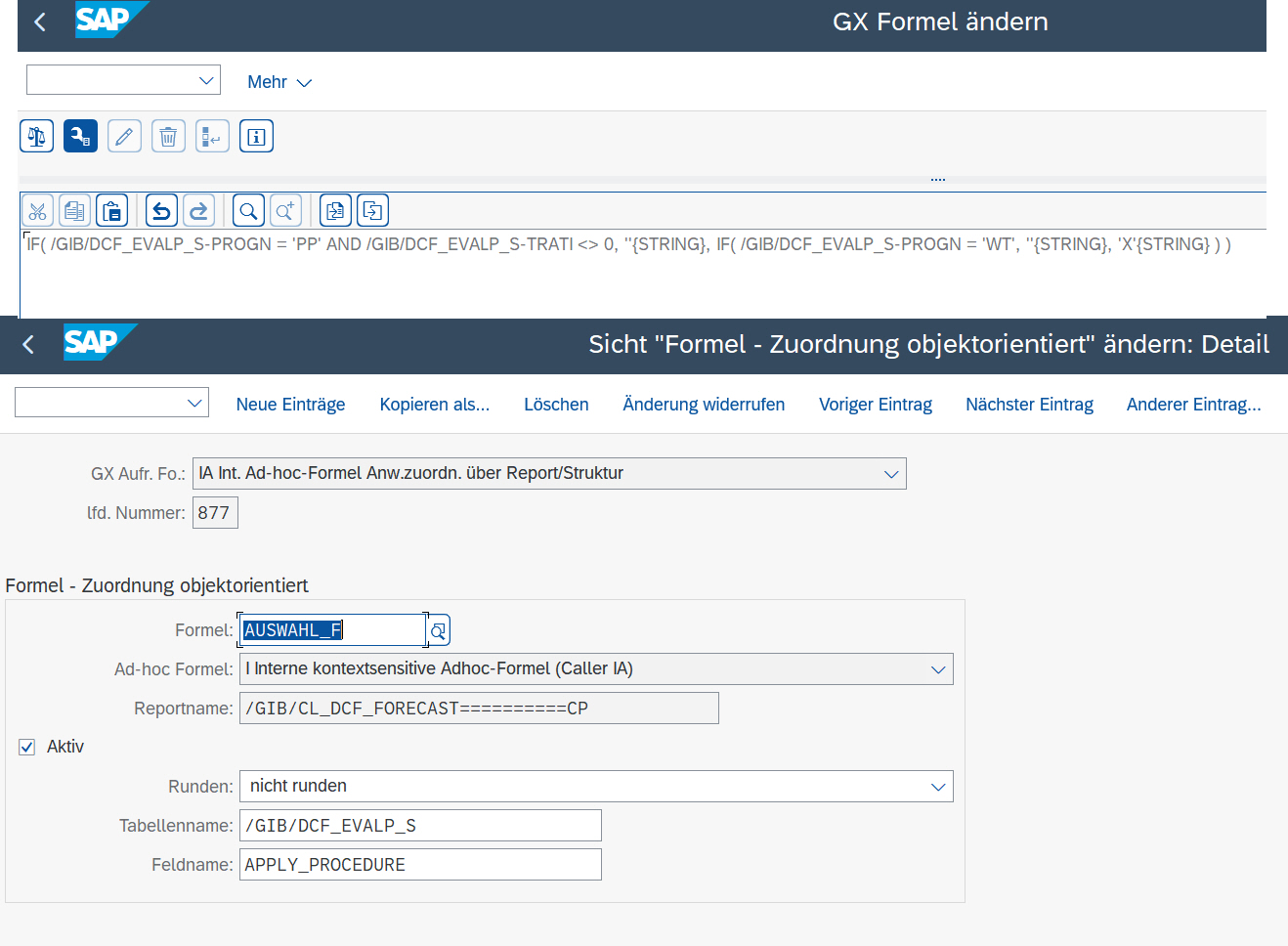 Prognoseverfahren können jetzt per Formel aktiviert werden, als Struktur dient /gib/dcf_evalp_s mit allen Einstellungen des Szenarios (wenn übergeben oder ermittelbar) und einer Bewertung der Datenreihe nach den folgenden Kriterien TRATI 1 Type /GIB/DCF_TRATI INT4 10 0 Trendindikator TRASI 1 Type /GIB/DCF_TRASI INT4 10 0 Saisonindikator MAXYZ 1 Type /GIB/DCC_MAXYZ CHAR 2 0 XYZ-Kennzeichen PROGN 1 Type /GIB/DCF_PROGN CHAR 2 0 Prognoseverfahren TRAPN 1 Type /GIB/DCF_TRAPN DEC 10 2 PN (prozentualer Anteil Nullperioden) PERIODS_PAST 1 Type /GIB/DCF_PPAST INT4 10 0 Anzahl Historie APPLY_PROCEDURE 1 Type /GIB/DC_APPLY CHAR 1 0 Übernehmen/anwenden