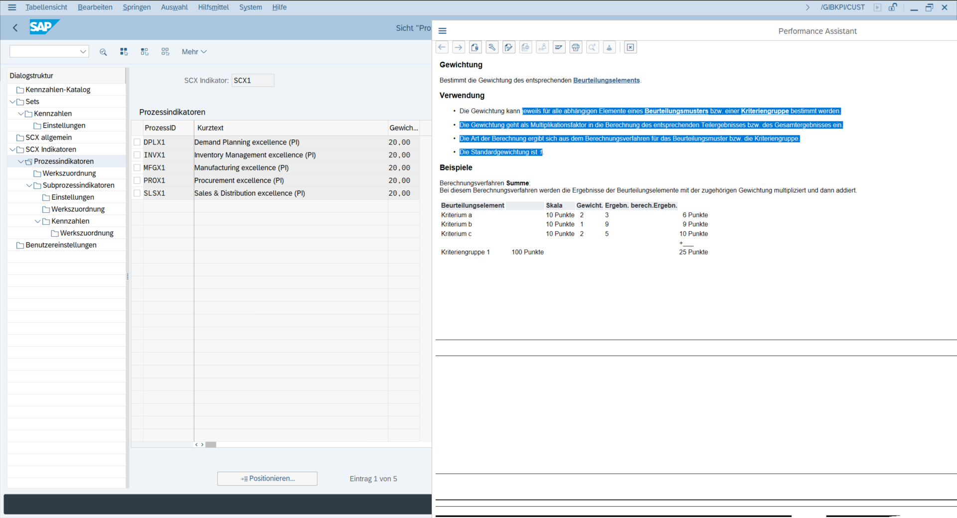 Die F1-Hilfe der Gewichtung entspricht nicht der Logik der unterschiedlichen Prozessindikatoren im Customizing. Siehe Screenshot