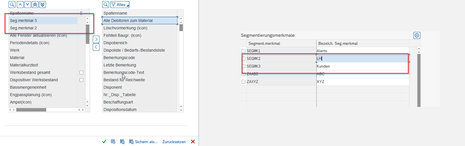 Im Spaltenvorrat wird jetzt auch der gepflegte Name angezeigt. Erledigt auf FE0 und E74.