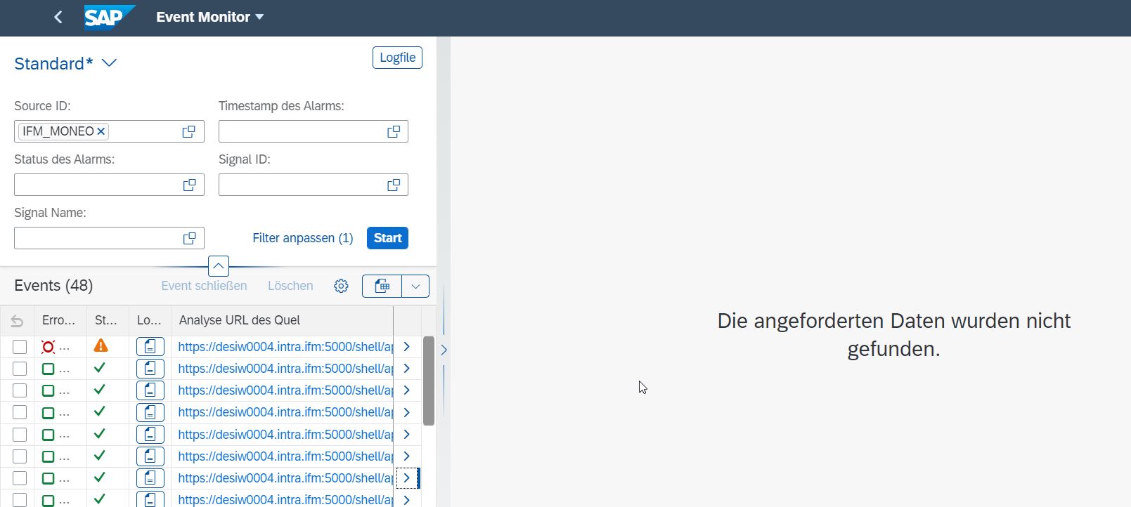 Created attachment 5770 [details] Details bleiben leer. Getestet auf FE0, FD0 und FQ0 Wenn man in der Fiori-Version des Eventmonitors versucht, die Details zu einem Event aufzurufen, erscheint eine Fehlermeldung und der Inhalt bleibt leer. Siehe Anlage. Möglicherweise steht das Problem im Zusammenhang mit dem S/4 Upgrade.