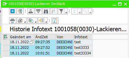 Created attachment 5806 [details] Screenshot Historie Infotext Die Überschrift im Fenster Historie Infotext ist im ALV zu groß (inkonsistent gegenüber anderen ALVs im DCP). Der Titel der Dialogbox enthält nur die Element-Beschreibung, nicht worum der Inhalt sich handelt (Historie Infotext: fehlt)