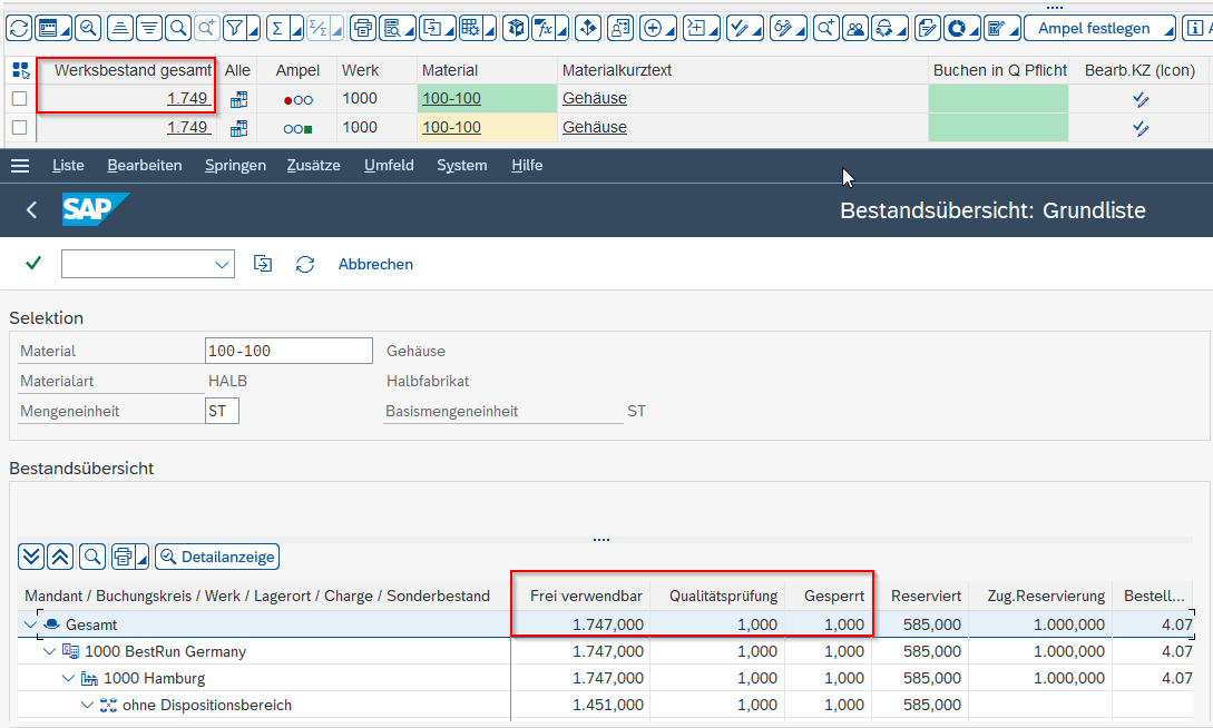 Bei dem FUBA wird gesamte Werksbestand als (frei verwendbare Bestand + Qualitätsprüfung + gesperrte Bestand + Umlagerungsbestand + Kundensonderbestand + Lieferantensonderbestand ).
