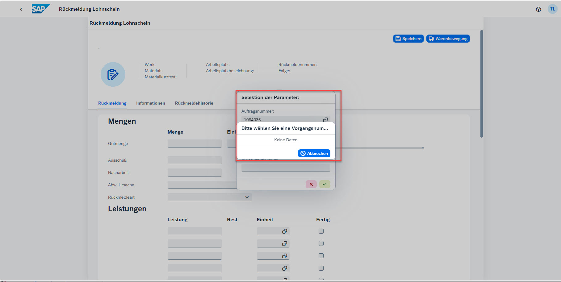Created attachment 6169 [details] Testbeispiel FQ0 Nach Stornierung von allen Vorgangsrückmeldung kann die Vorgangsnr. nicht mehr selektiert werden. "Keine Daten vorhanden". (siehe Screenshot)