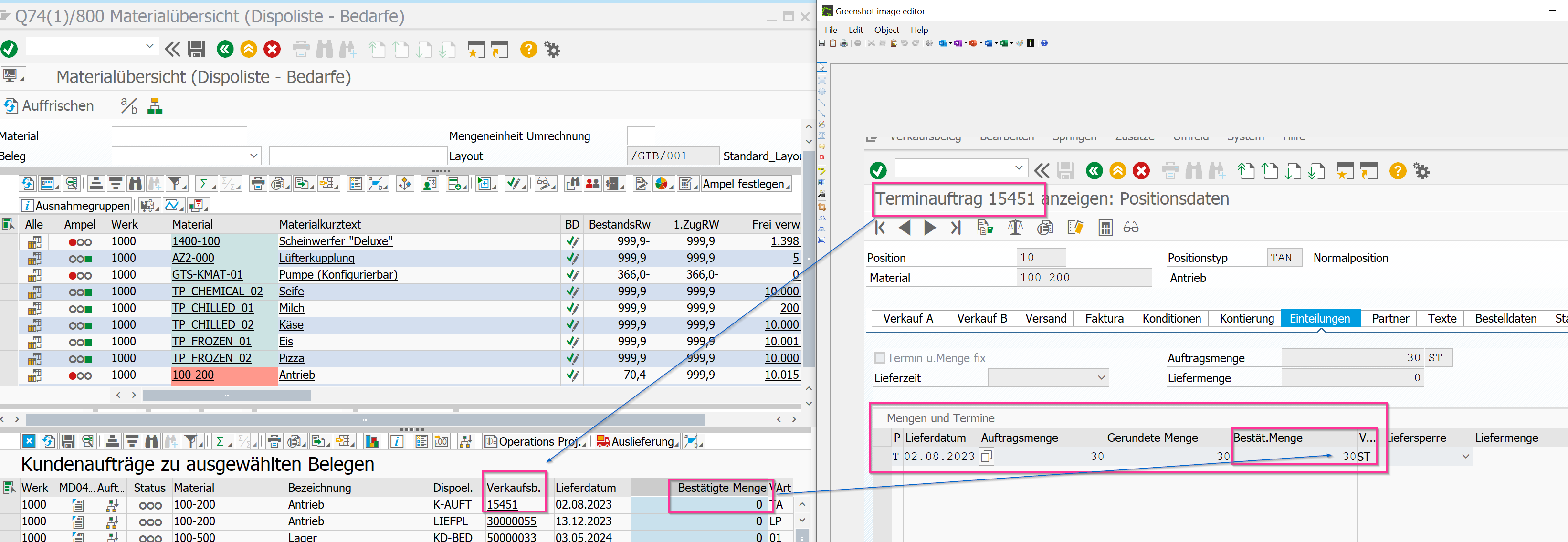 Die Bestätigte Menge der Einteilung soll in die Übersicht aufgenommen werden.