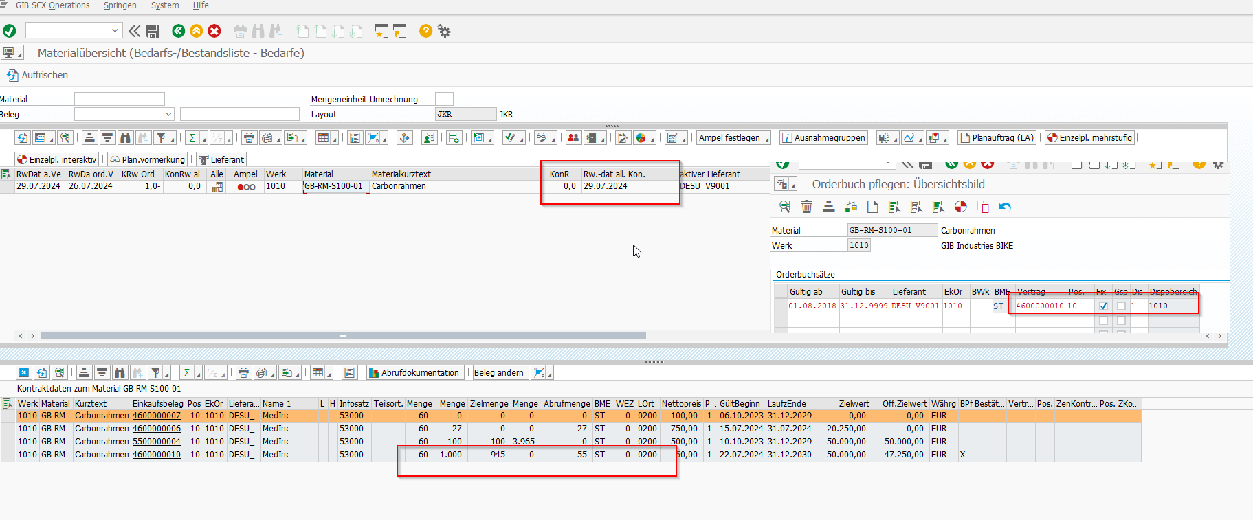 Bei der Kontraktreichweite, die über die Bedarfsdecker errechnet wird, wird der Werksbestand berücksichtig. Die ist falsch, weil bei der Anlage diese schon berücksichtig wurden.