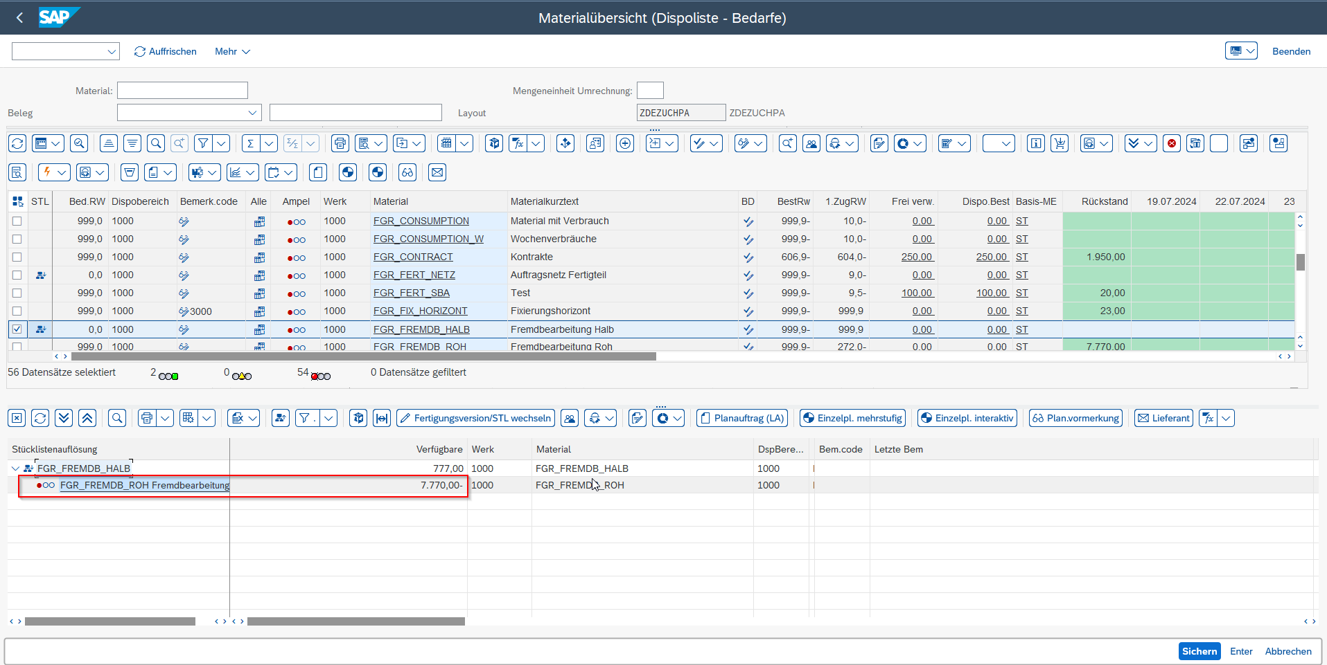 Wir haben ein Feedback vom Kunden bekommen, dass es hilfreich wäre, wenn wir das Feld Verfügbare Menge bei der negativen Mengen auf rot färben werden. Es handelt sich um das Fenster: Stücklistenauflösung.
