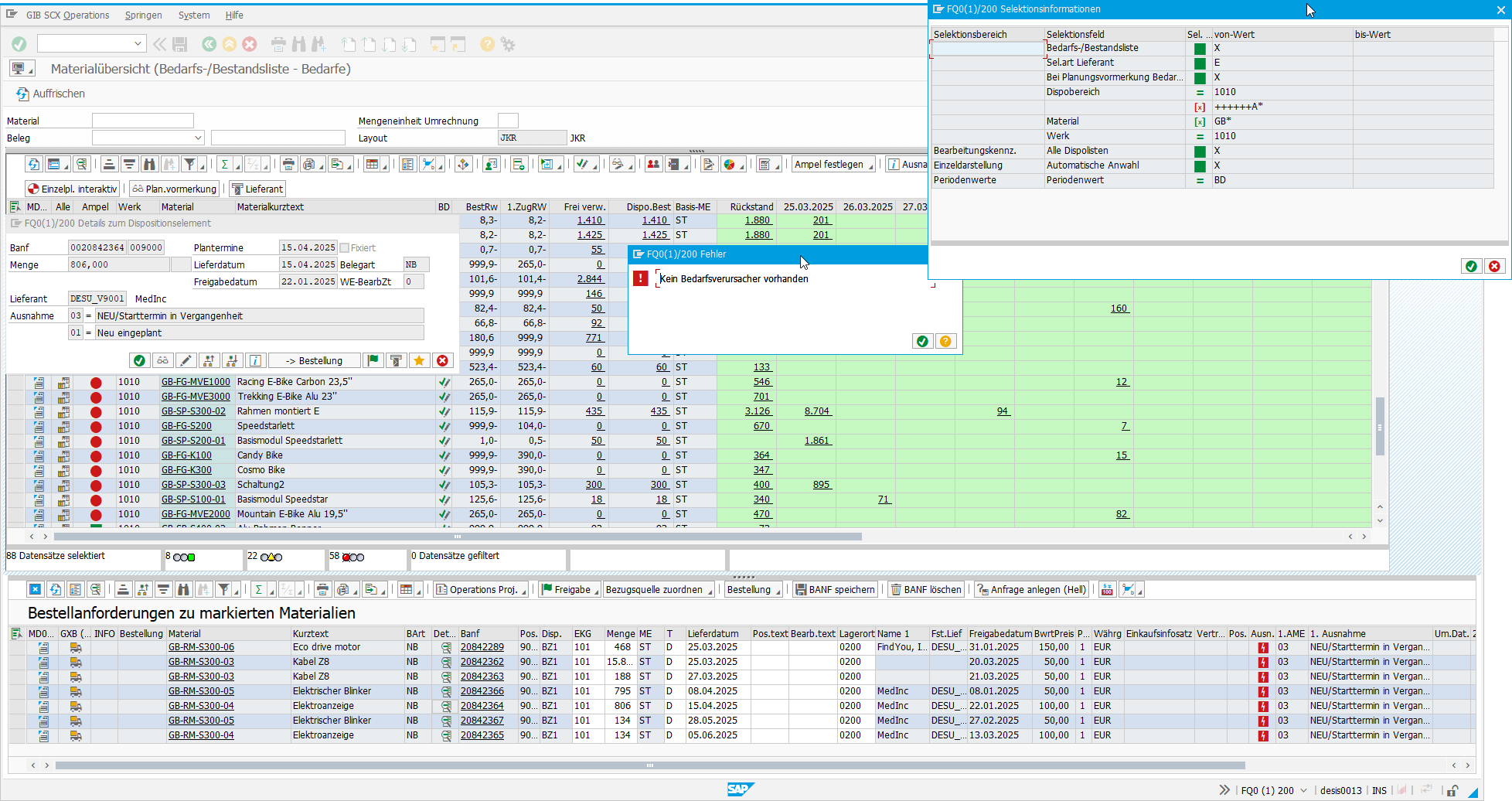 Wenn der HANA Preread aktiviert ist und in den Detailfenstern Planauftrag, Fertigungsauftrag, Bestellanforderung und Bestellung mit Datenquelle Bedarfs-/Bestandsliste gelesen wird, dann erscheint kein Bedarfsverursacher mehr. Dies liegt daran, dass sobald der Preread für das Material stattgefunden hat, dann klappt die Bedarfsverursacher-Ermittlung nur noch, wenn diese Daten nicht aus Speichergründen gecleart wurden. In der Datenbeschaffung wurde aber bisher nach dem Lesen der BBLs der Speicher gecleart. Dies darf nun nur noch erfolgen, wenn auch die Bedarfsverursacher ermittelt wurden. Zudem muss dann auch beim Klick auf das Bedarfsverursacher-Icon jeweils ein Preread stattfinden, plus anschließendem Clear.
