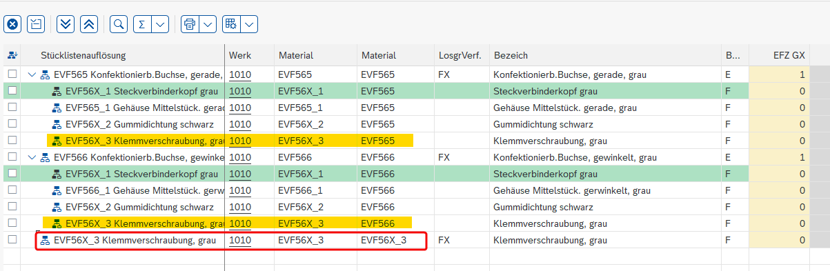 Created attachment 6930 [details] Beispiel WBZ BOM (GRID und TREE) Im Modus Tree werden Materialien, die Selektiert werden und in der Stückliste andere Materilien mehrfach angezeigt. (siehen Anhang).